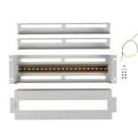 19" szabványos méretű, 3U magas feszültségelosztó. DIN TS-35 sínnel, fedéllel, kábelrendezővel, kábelátvezető nyílásokkal és földeléssel van felszerelve, amelyek minden követelménynek megfelelnek.