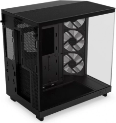 A fekete NZXT H6 Flow RGB elegáns panorámaüvegezést ötvöz optimalizált légáramlással. A kétkamrás felépítés elválasztja a tápegységet és a kábelezést a fő komponensektől, ami javítja a hőmérsékleteket és tiszta, professzionális megjelenést biztosít a konfigurációnak. A perforált felső és oldalsó panelek nagy légáramlást támogatnak, miközben felfogják a port.