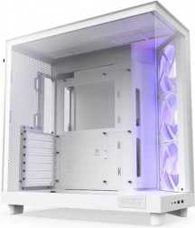 Az NZXT H6 Flow RGB magasabb szintre emeli a PC-építést. A hézagmentes élű panorámás üvegpanelek kiemelik az alkatrészeket, míg a kompakt kétkamrás elrendezés a kábelezést és a tápegységet a fő részegységektől elkülönítve biztosít tiszta légáramlást és esztétikát.