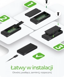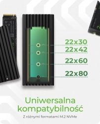 A 30/42/60/80 mm-es hosszok támogatásának köszönhetően univerzális megoldást kap a legtöbb NVMe modulhoz. Az összeszerelés gyors és kényelmes – a fedél kioldása után a meghajtó egyszerűen bepattintható csavarok nélkül, és már kezdheti is a munkát. Az ultrakompakt kialakítás elfér bármely táskában, így adatai mindig kéznél vannak.