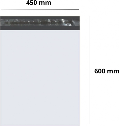 A nagyvonalú 450 × 600 mm méret alkalmas ruházat, elektronika és háztartási cikkek feladására is. A tasakok újrahasznosítható PE-ből készülnek, ami támogatja a fenntartható logisztikát.