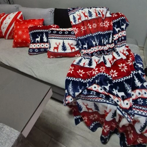 Vigye otthonába a tél skandináv varázsát. A rénszarvasos, hópelyhes és fenyőfás minta tengerészkék, piros és fehér színekben szépen feldobja a kanapét és az ágyat is. A prémium mikropolár szövetnek köszönhetően rendkívül puha és meleg, így a telet maximális kényelemben élvezheti.