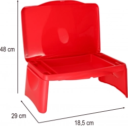 Az asztalka gyorsan összecsukható kompakt méretre, könnyű hordozni és tisztítani. A tartós műanyag kialakítás stabil és biztonságos használatot nyújt ölben és ülésen egyaránt.