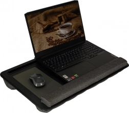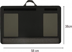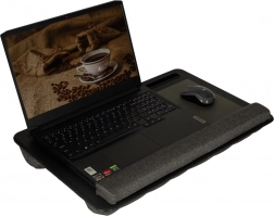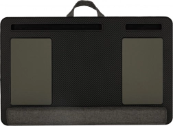 A praktikus ölasztal javítja kényelmét otthoni munkához és utazás közben is. Az alján lévő puha párnák stabilitást és a lábaktól való hőelvezetést biztosítanak, míg a felső, strapabíró lap biztos alapot ad a laptopnak és az egérnek. Az integrált csuklótámasz segít csökkenteni a fáradtságot hosszan tartó gépelésnél.