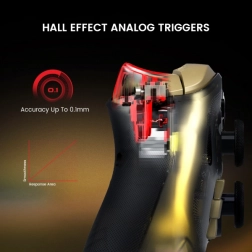 A vezérlő Xbox által hitelesített, és Hall-effektus technológiát használ a hosszú élettartamú, driftmentes működésért. A finoman járó analóg ravaszok pontosan érzékelik a nyomás mélységét – ideális verseny- és akciójátékokhoz. A négy rezgőmotor (a markolatokban és a ravaszokban) valósághű haptikus visszajelzést nyújt.
