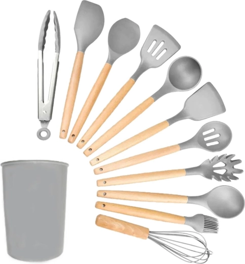 Fedezze fel a teljes konyhai készletet, amely könnyű és tartós anyagból készült, amely nem karcolja meg az edények felületét. Minden eszközt úgy terveztek, hogy multifunkcionális és praktikus legyen a mindennapi konyhai feladatokhoz.