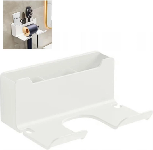 A fehér hajszárító tartó falra úgy lett tervezve, hogy kényelmes és helytakarékos megoldást nyújtson a fürdőszobájában. A felszerelése nagyon egyszerű a kétoldalas ragasztószalag használatával, ami növeli sokoldalúságát és megkönnyíti a telepítést különböző helyiségekben.