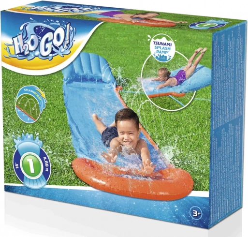 A Tsunami vízicsúszda a Bestway-től úgy lett kialakítva, hogy maximális szórakozást nyújtson a hosszú, strukturált csúszófelületének köszönhetően, amelyet teljes hosszában vízsugarak nedvesítenek.