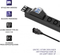 A megfelelő PDU tápcsík kiválasztásakor fontos figyelni a funkcionalitásra, az anyagok minőségére, a szerelhetőségre és az olyan funkciókra, mint például a 2 m hosszú kábel és a megvilágított kapcsolót, amely gyors forrást nyújt a tápcsatlakozáshoz. A mi csíkunk tökéletesen illeszkedik az 1U 19" rack szekrényekbe, és 8 darab IEC 320 C14 típusú aljzatot tartalmaz. Továbbá, egypólusú túlfeszültség megszakítóval is felszerelték, hogy megvédje a csatlakoztatott eszközöket a túláramtól.