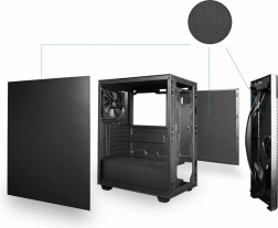 Ez a fekete Mid Tower PC ház a letisztult, elegáns előlapot modern belső elrendezéssel ötvözi a könnyű építés és a jövőbeni bővíthetőség érdekében. Az átgondolt légáramlásnak és a bőséges szerelési pozícióknak köszönhetően a komponensek hűvösek maradnak még nagy terhelésnél is.