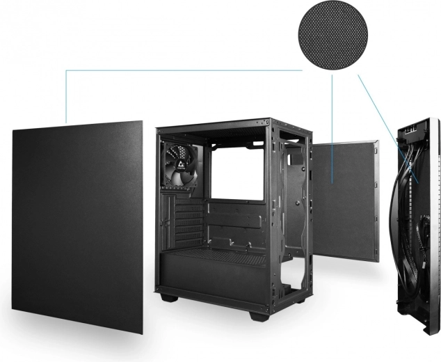 - Előre telepített 1× 120 mm-es hátsó ventilátor