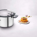 A háromrétegű SIGMA Classic+ alj egyenletesen vezeti a hőt, így stabil eredményt ér el gázon, kerámián és indukción is. Az ergonomikus szilikon fogantyúk hűvösek maradnak érintéskor és növelik a biztonságot. Az 18/10 rozsdamentes acél higiénikus, korrózióálló és könnyen tisztítható – az edények mosogatógépben moshatók és 180 °C-ig sütőben használhatók.