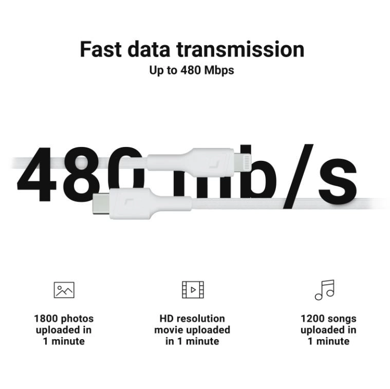 Az 18 W-os Power Delivery gyorstöltés támogatása lehetővé teszi az iPhone SE (2020) / 11 / 11 Pro / XS / X készülékek akár 50%-ra történő feltöltését mindössze 30 perc alatt! A kábel támogatja a hagyományos töltést is olyan eszközöknél, mint az iPhone 7 / 6S / 6, iPad Air / mini és iPod