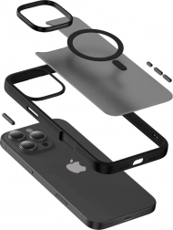 Elegáns CRONG védőtok iPhone 16 Pro-hoz beépített MagSafe rendszerrel és 37 erős N52 mágnessel, amely gyors vezeték nélküli töltést és megbízható kiegészítőrögzítést biztosít. A polikarbonát hátlap matt, ujjlenyomatmentes felülettel minimalizálja a foltokat, míg a megerősített sarkok, a megemelt kijelzőperem és a kameramodul védelme mindennapi biztonságot nyújtanak. Az alumínium gombok pontos és kényelmes nyomást biztosítanak.
