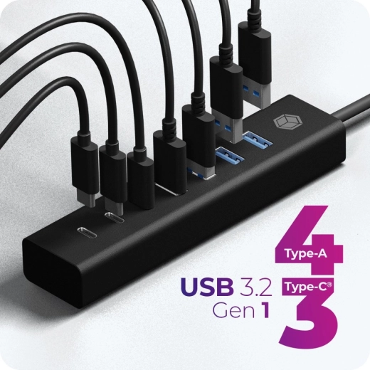 Bővítse laptopját vagy PC-jét további csatlakozási lehetőségekkel az ICY BOX hubbal, amely 7 portot kínál – 3× USB‑C és 4× USB‑A. Élvezze az akár 5 Gb/s sebességet, a tartós alumínium házat, a mindig elegendő energiát a csomagban található USB‑C hálózati adapternek köszönhetően, valamint az egyszerű Plug & Play használatot telepítés nélkül.