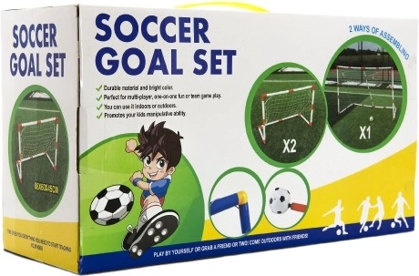 A szett továbbá tartalmaz egy focilabdát és egy pumpát, így bármilyen más felszerelés azonnal készen áll és kezdődhet a meccs.