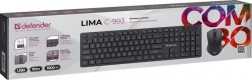 A DEFENDER LIMA C-993 vezeték nélküli készlet a kényelmet és az egyszerűséget ötvözi. A numerikus blokkal ellátott, teljes méretű billentyűzet gyors számbegyűjtést biztosít, míg az alacsony profilú billentyűk halk és kellemes leütést kínálnak. A szimmetrikus egér biztos fogást ad jobb- és balkezeseknek egyaránt.