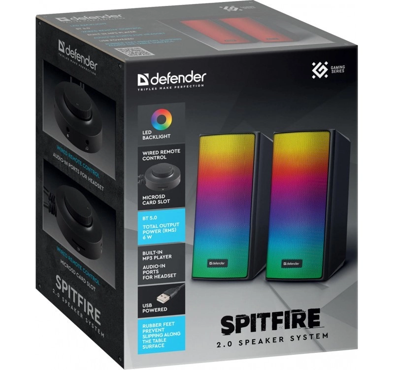 Élvezd a tiszta sztereó hangzást elegáns kivitelben. A DEFENDER Spitfire 2.0 hangszórók a stabil Bluetooth 5.2-t alacsony fogyasztással, az egyszerű USB tápellátást és a látványos LED elemeket kombinálják, amelyek feldobják bármelyik gamer vagy munkaállomásos összeállítást.