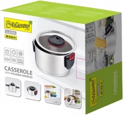 Rozsdamentes edény Maestro minőséget és hatékonyságot hoz a konyhájába kiváló minőségű rozsdamentes acélból készült szerkezetének köszönhetően. Többrétegű termoakumulációs aljának köszönhetően a hő eloszlása egyenletes, ami energiát takarít meg és javítja a főzés eredményeit. Az üveg fedél gőz elvezető nyílással lehetővé teszi a főzés ellenőrzését anélkül, hogy feleslegesen fel kellene emelni a fedőt.