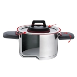 A fogantyúk az edényen és a fedőn könnyen összecsukhatók, ami megkönnyíti a tárolást és helyet takarít meg a konyhájában.