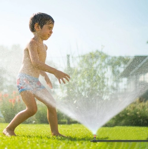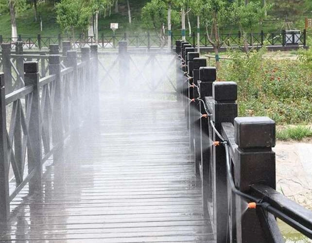 A 11 fúvókából érkező apró vízcseppek csökkentik a környezeti hőmérsékletet és növelik a kinti tartózkodás komfortját – ideális a forró nyári napokra.