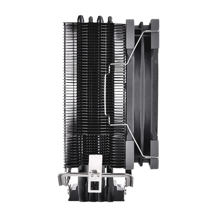 A Thermaltake hatékony léghűtést kínál a processzor számára látványos ARGB megvilágítással, amely szinkronizálható az alaplappal és más komponensekkel. A réz talp és a sűrű alumínium lamellák megterhelés alatt is stabil hőmérsékletet biztosítanak, így a rendszer teljesítménye és megbízhatósága megmarad.