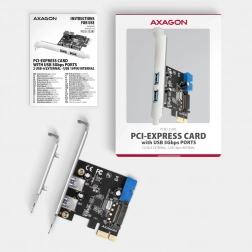 A PCIe kártya akár 4 db USB 5 Gbps (USB 3.2 Gen 1) porttal bővíti PC-jét. Kettő USB-A a hátlapi takarólemezen, további kettőt a belső 19 pines USB header biztosít az előlapi USB aljzatokhoz vagy belső eszközökhöz. A vezérlő a Renesas chipkészletre épül UASP támogatással a gyorsabb külső SSD-működés és a megbízható kompatibilitás érdekében.
