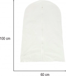Védje kedvenc darabjait a portól, szennyeződéstől és a gyűrődéstől. Ez a könnyű és tartós huzat ideális öltönyökhöz, ruhákhoz, ingekhez és kabátokhoz. Az átlátszó kivitel gyors tartalomfelismerést tesz lehetővé, míg a teljes hosszában futó cipzár megkönnyíti a kezelést.