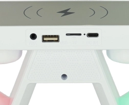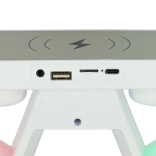 - hangszóró, BT, FM, SD kártya, AUX, vezeték nélküli töltés, RGB, óra, ébresztőóra