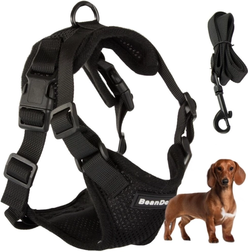 Könnyű, nyomásmentes hám kis testű kutyáknak M-es méretben, amely kényelmet és irányíthatóságot kínál a séták során. A légáteresztő hálós anyagnak, a puha párnázásnak és a széles beállítási tartománynak köszönhetően tökéletesen illeszkedik, nem dörzsöli a bőrt és nem terheli a nyakat. A fém D‑gyűrű, a gyorskioldó csatok és a fényvisszaverő elemek növelik a biztonságot. A csomag része egy 150 cm-es póráz fém karabinerrel.