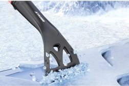 A könnyen levehető jégkaparó és kefe lehetővé teszi, hogy minden rész külön-külön is használható legyen, így növelve az eszköz sokoldalúságát. A kompakt kialakítás (összecsukva 80 cm) megkönnyíti a tárolást az autó csomagtartójában. Az ergonomikus fogantyú EVA habbal kényelmes fogást és hideg elleni védelmet biztosít.