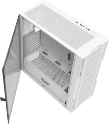 A modern és tágas, fehér színű DarkFlash DK431 Mesh ház nagy teljesítményű hűtést, zsanéros, edzett üveg oldallapot és bőséges csatlakozókat kínál a kényelmes használathoz. A mesh előlap porfilterrel, valamint akár 12 ventilátor vagy 360 mm-es vízhűtés támogatása révén könnyedén tartható az ideális hőmérséklet akkor is, ha igényes játékokról vagy munkáról van szó.