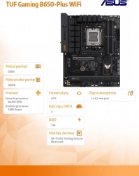 Az ASUS TUF GAMING B650-PLUS WIFI a legújabb AMD platformot, az AM5 foglalatot használja Ryzen processzorokhoz, és a tartósságra, stabil tápellátásra, valamint a hatékony hőelvezetésre helyezi a hangsúlyt. A katonai minőségű komponensek és az alapos terheléses tesztek hosszú távú megbízhatóságot garantálnak még igényes gamer összeállításokban is.