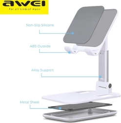 Az AWEI X11 egy praktikus asztali tartó, amely elegáns dizájnt ötvöz magas funkcionalitással. A minőségi anyagok (PC, ABS és alumíniumötvözet) gondoskodnak a tartósságról és stabilitásról, míg a szilikon elemek megóvják készülékét a karcolásoktól, és biztos rögzítést nyújtanak.