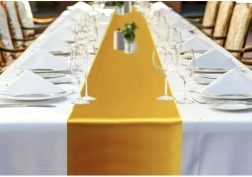 Az Arany Ruhhy asztali futó kiváló választás bármilyen ünnepi alkalomra a asztaldekoráció érdekében. Sűrű szövésű szatén anyagból készült, amely ellenáll a sérüléseknek, így több szezonon keresztül használható.
