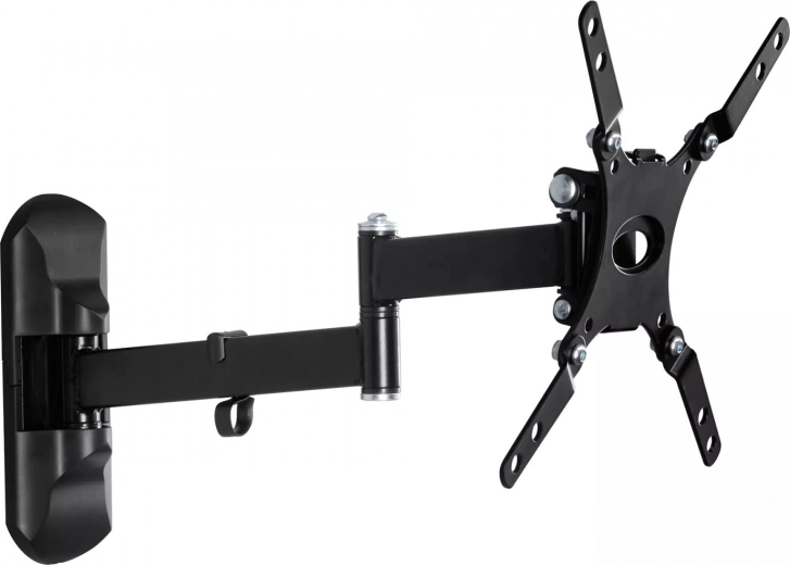 A tartó kompatibilis az LCD/LED/OLED/QLED televíziókkal, és használható lapos és ívelt képernyőkhöz is. A fekete konstrukció nagy szögű elforgatási lehetőséget kínál, akár 180°-ban, ami optimális nézési szöget tesz lehetővé.