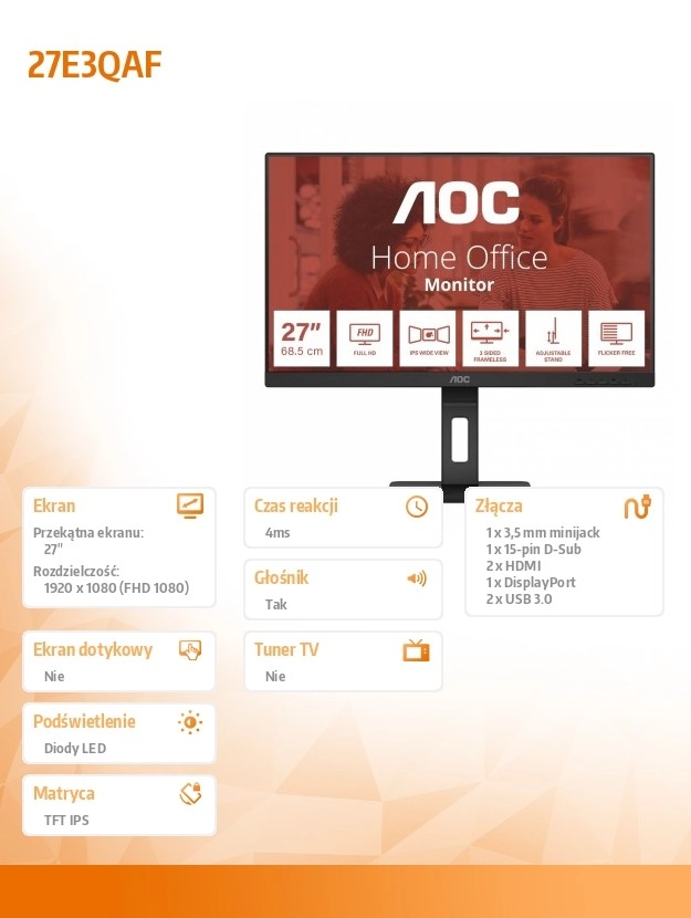 Az elegáns vékony keret és a stílusos fekete állvány modern megjelenést kölcsönöz a monitornak, amely bármilyen környezetbe beleillik.