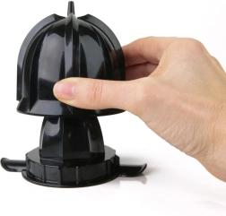 A praktikus kifolyó csepegésgátlóval (Anti-drip) tisztán tartja a munkafelületet, míg a rozsdamentes felület Anti-Fingerprint kezeléssel ellenáll az ujjlenyomatoknak és könnyen tisztítható. A gumitalpak stabilitást biztosítanak a pulton, a 2 cserélhető kúp pedig a kisebb és nagyobb citrusokhoz is illeszkedik. Ideális mindennapi használatra, egészséges reggelihez vagy gyors felfrissüléshez.