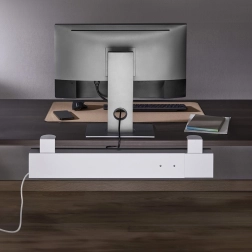 Az asztallap alá rejti a kábeleket és a hosszabbító elosztót, így a munkafelület áttekinthető és esztétikus marad.