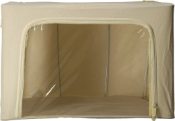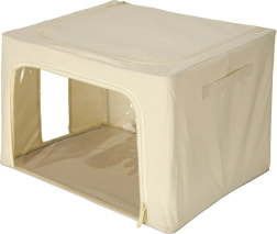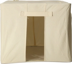Ez a krémszínű textil rendező ideális pehelypaplanokhoz, párnákhoz, takarókhoz, törölközőkhöz és szezonális ruhákhoz. A első cipzáras nyílásnak köszönhetően a doboz áthelyezése nélkül is kényelmesen kiveheti a dolgokat az alsó polcokról. Az átlátszó elülső fal azonnal láthatóvá teszi a tartalmat.