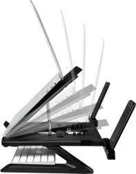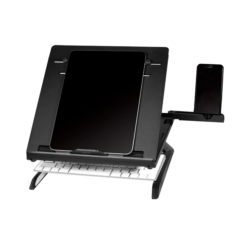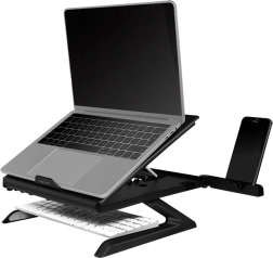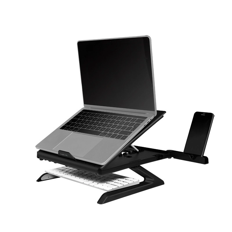 Ergonomikus laptop állvány okostelefon tartóval kilenc állítható pozíciót kínál az optimális nézőszög érdekében, valamint szellőztetett kialakítás a jobb légáramlás érdekében.
