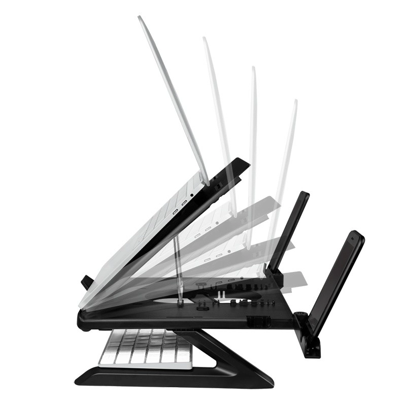 - Kilenc különböző pozíció a laptop magasságának és szögének beállításához