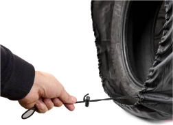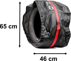 Az állítható pántoknak és a húzózsinóroknak köszönhetően pontos illeszkedést érhet el a teljes gumiabroncs körül. A strapabíró kivitel megóvja a portól, a nedvességtől és egyéb szennyeződésektől, legyen szó tárolásról vagy szállításról.