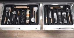 Áttekinthető tagolás az evőeszközöknek és konyhai eszközöknek, amely felgyorsítja a főzést és javítja a mindennapi konyhai munka szervezését.