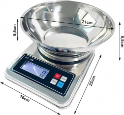 Ez a mérleg nagy rozsdamentes acél tállal és háttérvilágítással rendelkező kijelzővel van felszerelve a kényelmes eredményolvasás érdekében bármilyen fényviszonyok mellett. Tárázás funkció és automatikus kikapcsoló rendszer tovább növeli a felhasználói kényelmet.