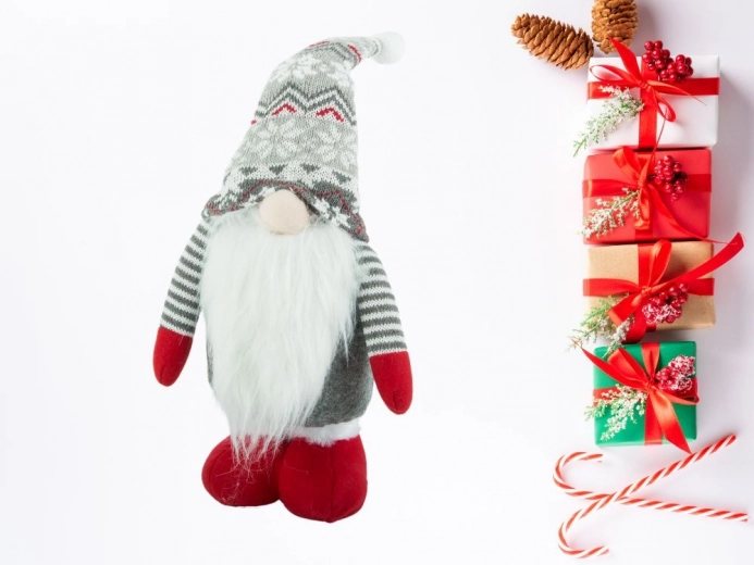 A manó strapabíró anyagból készül, amely jól bírja a mindennapos használatot. A stabil kivitel és a minőségi varrás biztosítja, hogy hosszú éveken át kedves része legyen az ünnepeknek. A semleges szürke szín könnyen kombinálható piros akcentusokkal és természetes tónusokkal.