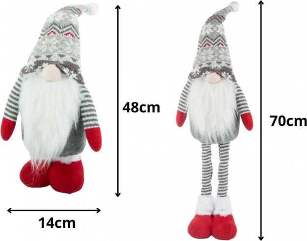 Varázslatos téli hangulatot teremthet otthonában ezzel a manóval, amely a dekorációval együtt „nő”. A teleszkópos lábaknak köszönhetően a magasság 50 és 70 cm között könnyen állítható, így tökéletesen illik polcra, komódra, ablakpárkányra és a karácsonyfa alá is. A pihe-puha textil kivitel, a hosszú fehér szakáll és a mintás szürke sapka északi bájt kölcsönöz a térnek.