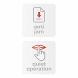 A kezelés intuitív: a fotocella gondoskodik az automatikus indításról és leállításról, a LED panel jelzi a tápellátást, a túlterhelést, a túlmelegedést és a megtelt kosarat. Az automatikus visszaforgatás csökkenti a papír elakadásának kockázatát, a csendes működés pedig nem zavarja a nyitott irodai környezetet.