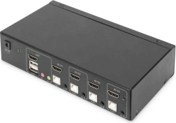 A professzionális, 4 portos HDMI KVM kapcsoló kényelmesen teszi lehetővé négy számítógép kezelését egyetlen munkaállomásról. Támogatja az UHD 4K/30 Hz (3840 × 2160) felbontást YUV 4:4:4 almintavételezéssel az éles képért, a zökkenőmentes váltást és a megbízható HDMI csatlakozást. Beépített USB a billentyűzethez és egérhez, valamint külön előlapi USB port meghajtóhoz, nyomtatóhoz vagy más perifériákhoz a maximális rugalmasság érdekében.