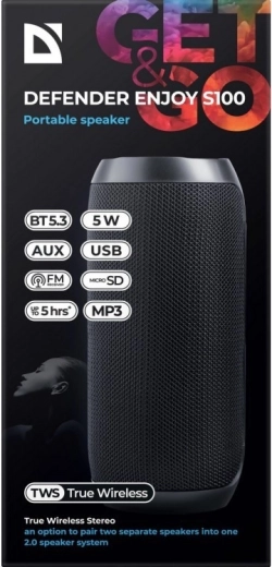 Élvezze kedvenc lejátszási listáit a DEFENDER Enjoy S100 hordozható hangszóróval elegáns feketében. A vezeték nélküli Bluetooth technológiának köszönhetően pillanatok alatt csatlakoztathatja telefonját vagy táblagépét, és hallgathatja zenéit felesleges kábelek nélkül. A beépített MP3-lejátszó és FM rádió otthon, útközben és a szabadban is sokoldalú szórakozást kínál.